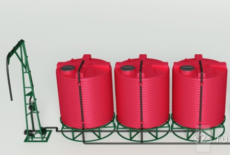 Состоит из емкости 10 м3, подставки, сливного крана, обвязки и системы трубопровода для загрузки и выгрузки.